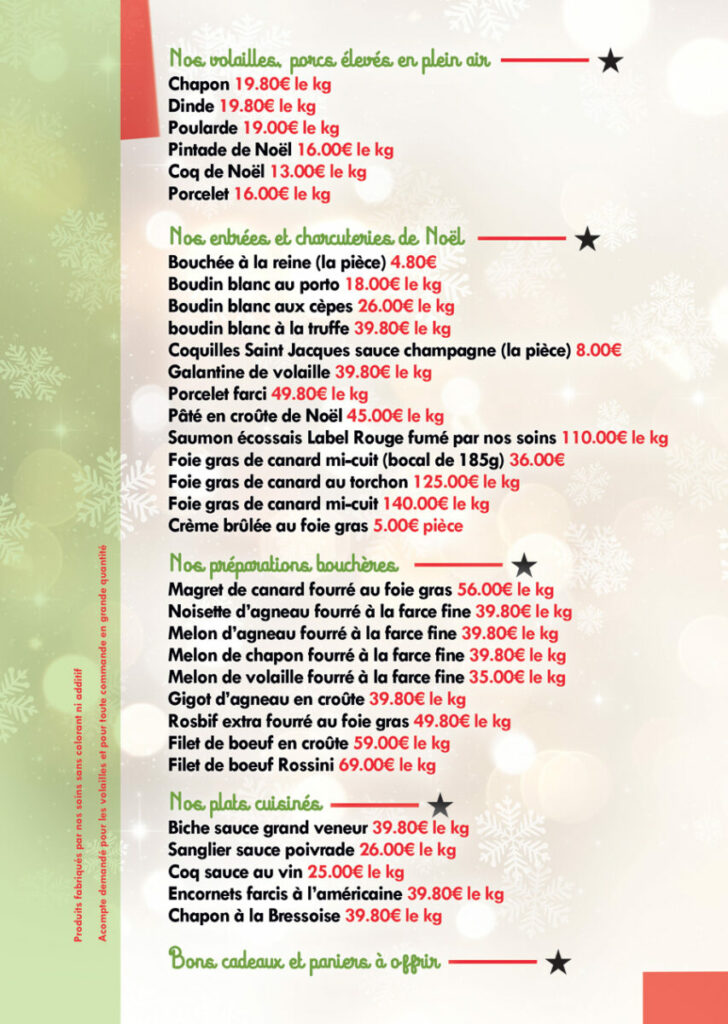 Toute commande de volaille, de porcelet et de produits festifs en grande quantité